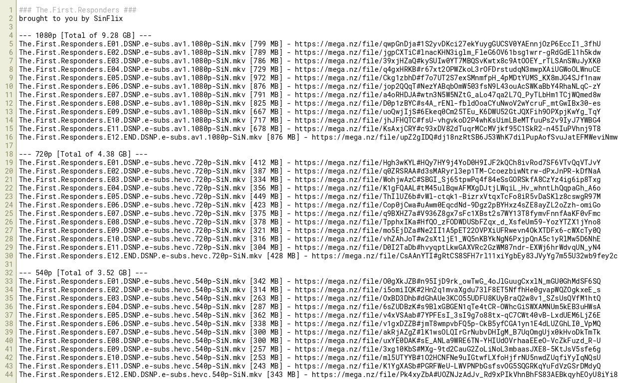 The.First.Responders.E04.DSNP.e-subs.hevc.540p-SiN.mkv [287 MB] - https://mega.nz/file/6sZUDBzK#s9BlxGBGEN1qTe4tCR-OWhcGiSWXAMNUm5kEB3uHWsA