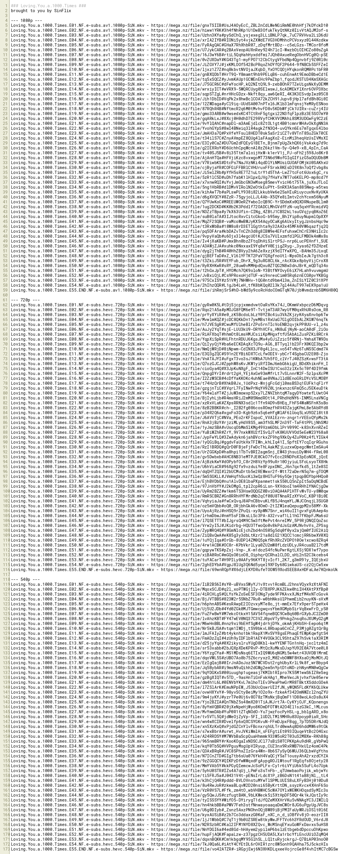 Loving.You.a.1000.Times.E26.NF.e-subs.av1.1080p-SiN.mkv - https://mega.nz/file/g2IEXRoY#D6UchhCpqWcnAl0zZ6kz1Vm-5y-Q4e9-xB_4pIn_CaA