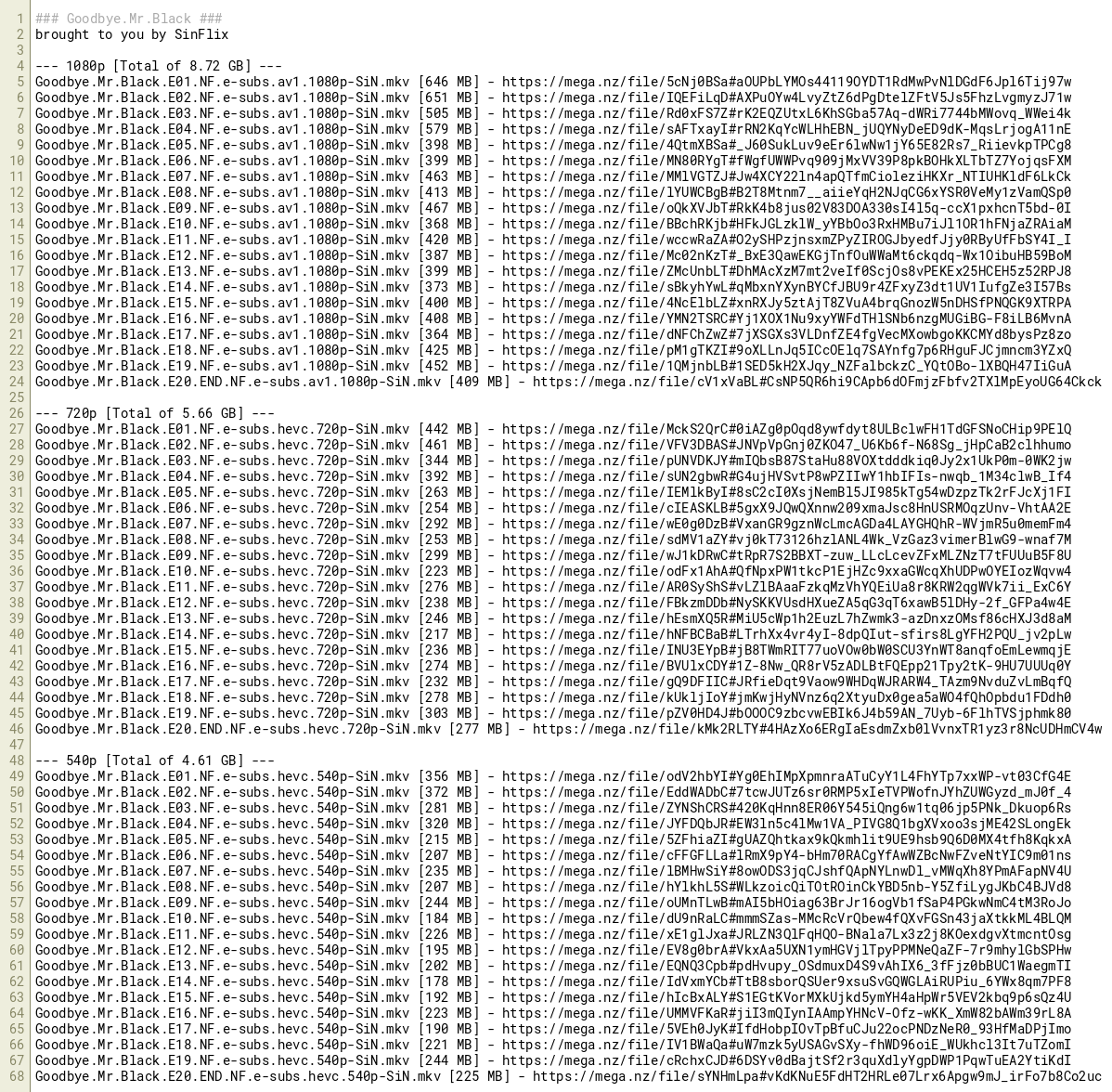 Goodbye.Mr.Black.E20.END.NF.e-subs.hevc.540p-SiN.mkv [225 MB] - https://mega.nz/file/sYNHmLpa#vKdKNuE5FdHT2HRLe07Lrx6Apgw9mJ_irFo7b8Co2uc