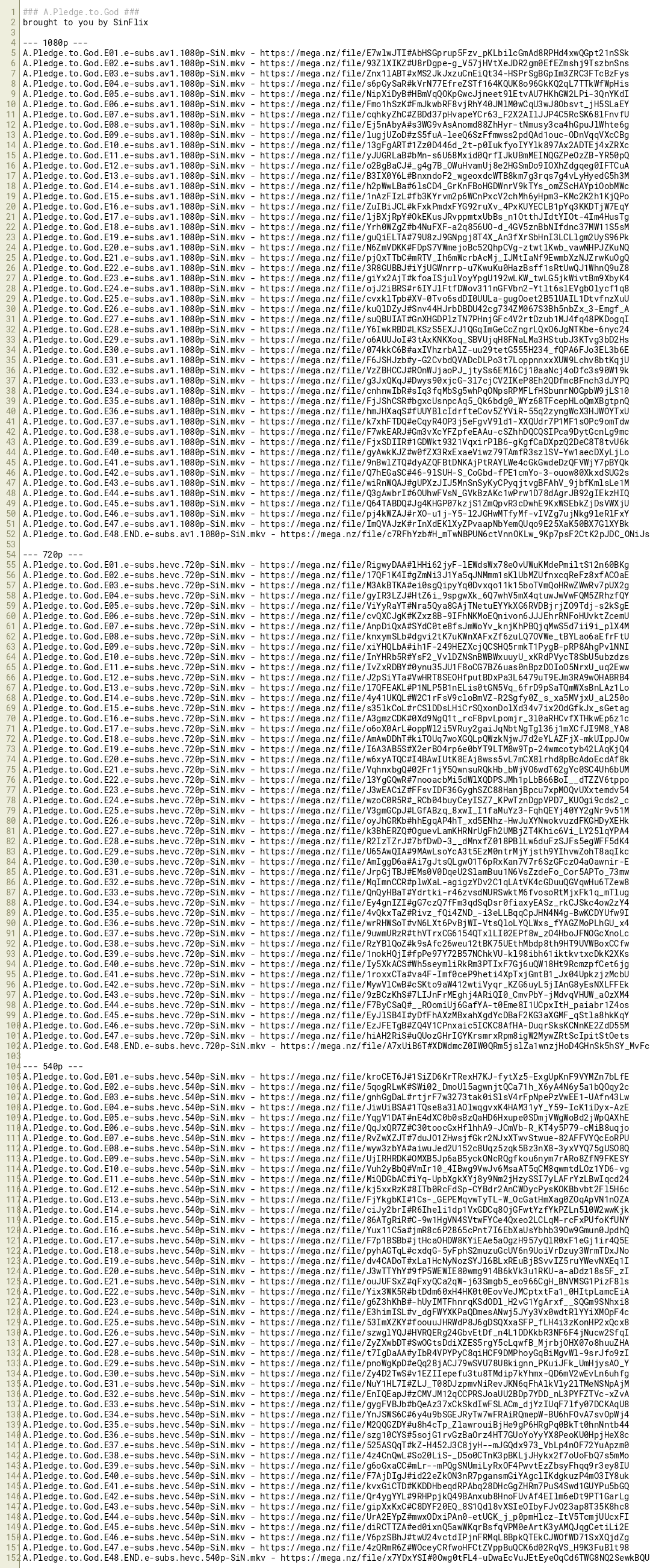 A.Pledge.to.God.E26.e-subs.hevc.540p-SiN.mkv - https://mega.nz/file/szwglYQJ#HVRQERg24GbvEtDf_n4L1DDKkbR3NF6F4jNucw2SfqI