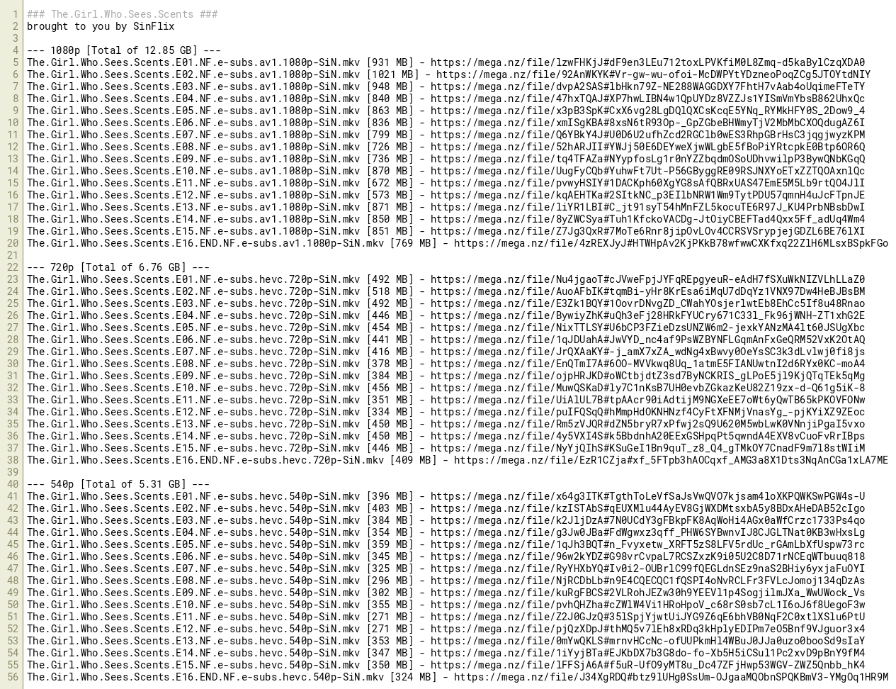 The.Girl.Who.Sees.Scents.E16.END.NF.e-subs.av1.1080p-SiN.mkv [769 MB] - https://mega.nz/file/4zREXJyJ#HTWHpAv2KjPKkB78wfwwCXKfxq22ZlH6MLsxBSpkFGo