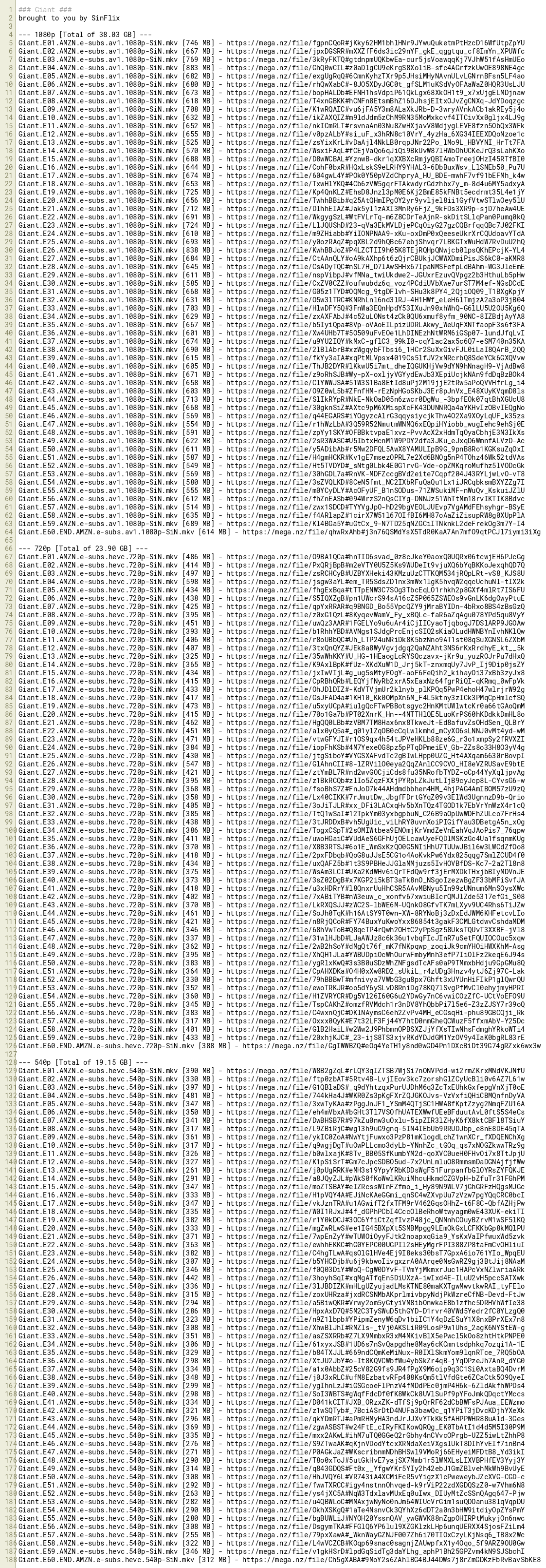 Giant.E54.AMZN.e-subs.hevc.720p-SiN.mkv [360 MB] - https://mega.nz/file/H1ZVRYCR#Dg5Vl26I60G6u2YDwGy7nC6vwiCOzZfC-UCtVoEFO9U