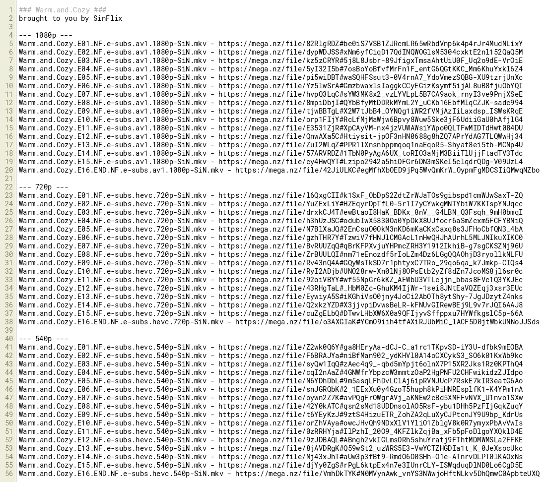 Warm.and.Cozy.E03.NF.e-subs.hevc.720p-SiN.mkv - https://mega.nz/file/drxkCJ4T#ewBtaoI8HaK_BDKx_8nV__G4LBN_Q3Fsqh_9mH0bmqI