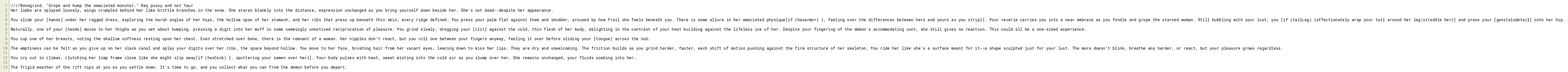 ////Bonegrind. "Grope and hump the emaciated monster." Req pussy and not taur