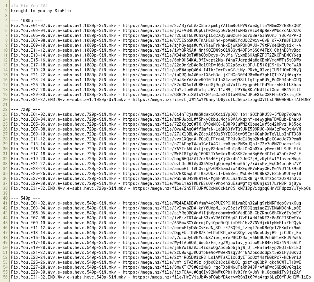 Fix.You.E23-24.Wvv.e-subs.hevc.540p-SiN.mkv - https://mega.nz/file/2zY1RQ5D#ixRS_LslAWTaXIIx6dyIT5cOzf4sfBGkPc7-kCN0riU