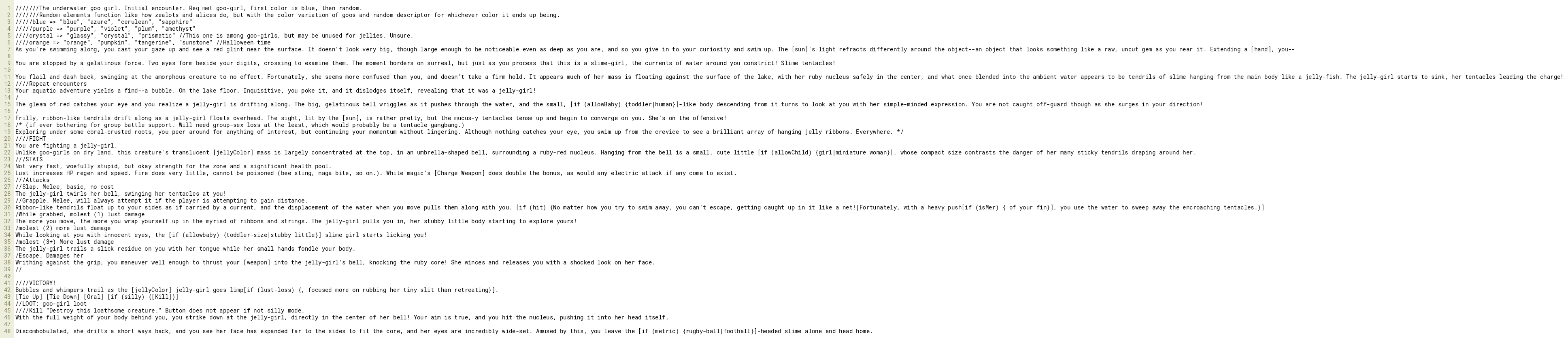 ///////The underwater goo girl. Initial encounter. Req met goo-girl, first color is blue, then random.