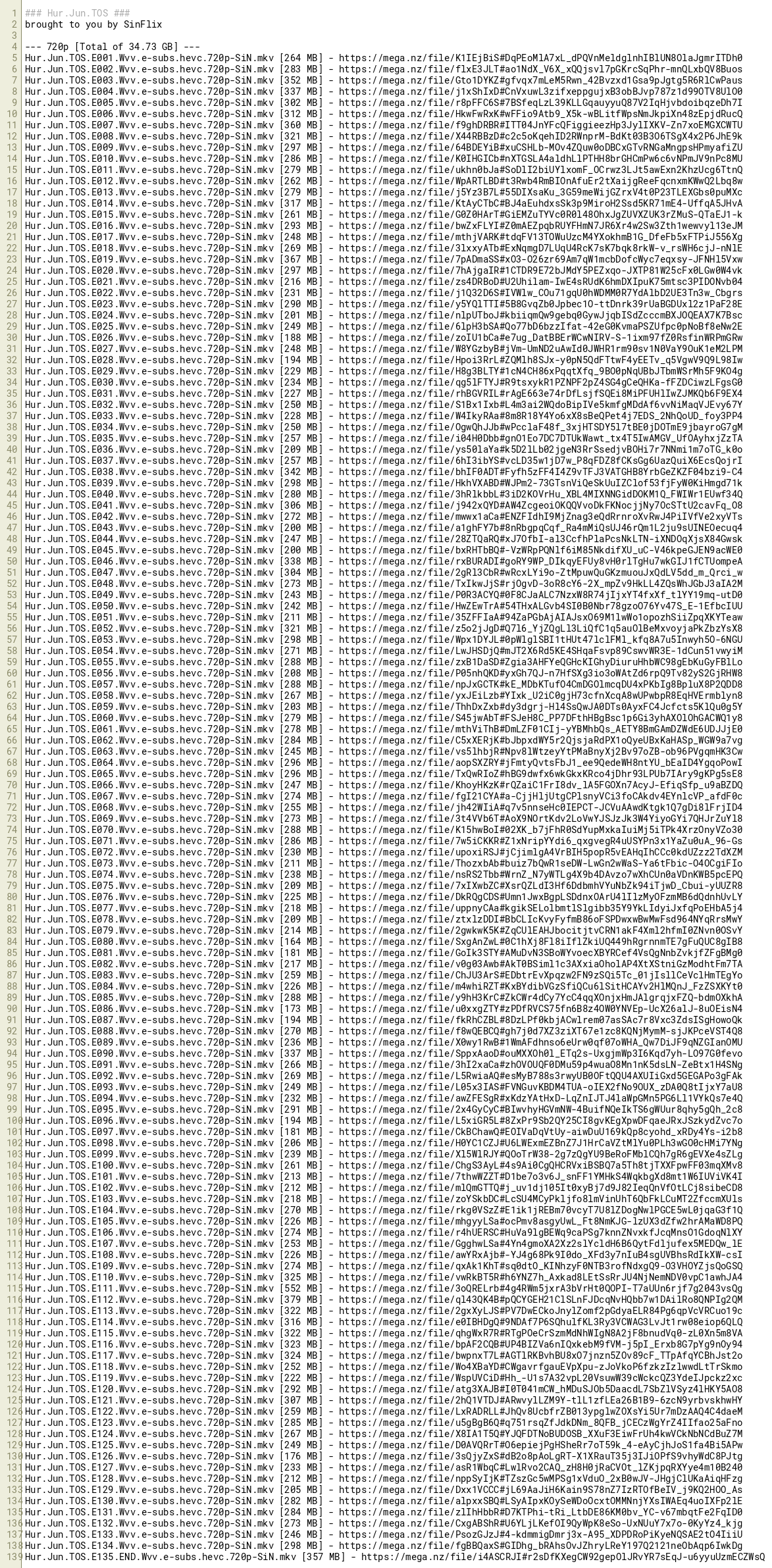 Hur.Jun.TOS.E012.Wvv.e-subs.hevc.720p-SiN.mkv [262 MB] - https://mega.nz/file/WpARTLBD#t3Rwb4RmBIOnAfuEr2tXaijgReeFqcnxmKWwQ2Lbq8w