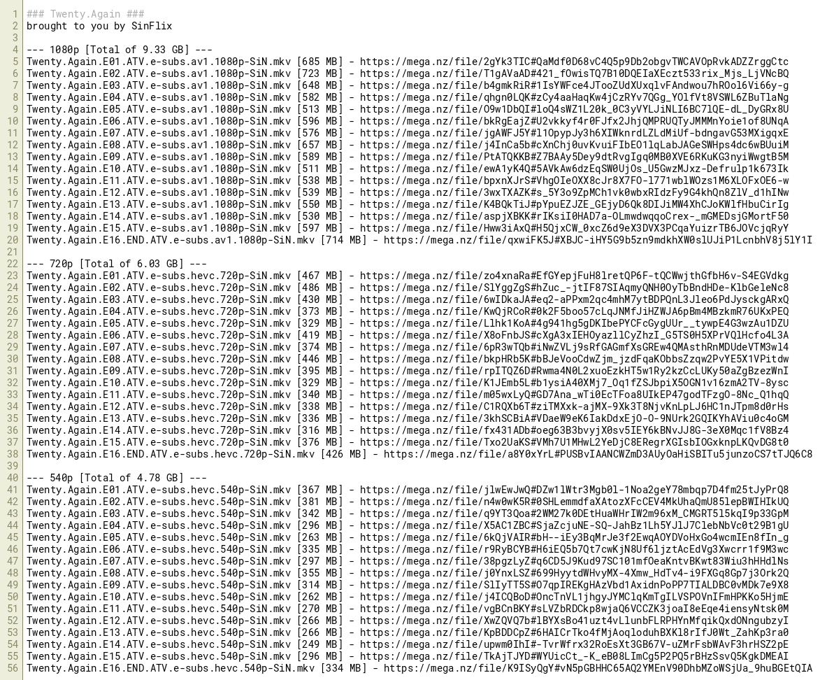 Twenty.Again.E12.ATV.e-subs.hevc.540p-SiN.mkv [266 MB] - https://mega.nz/file/XwZQVQ7b#lBYXsBo41uzt4vLlunbFLRPHYnMfqikQxdONngubzyI