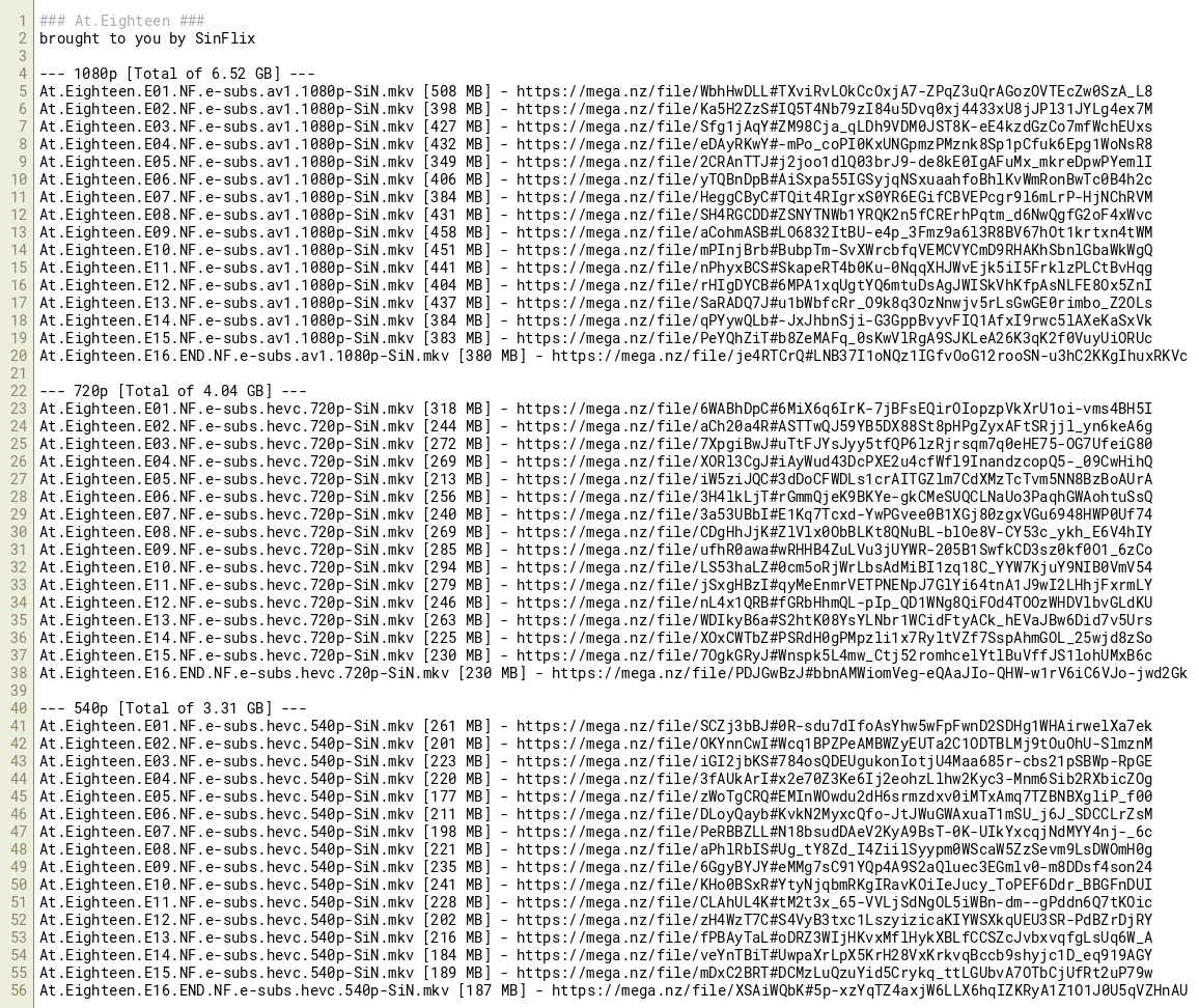 At.Eighteen.E04.NF.e-subs.av1.1080p-SiN.mkv [432 MB] - https://mega.nz/file/eDAyRKwY#-mPo_coPI0KxUNGpmzPMznk8Sp1pCfuk6Epg1WoNsR8