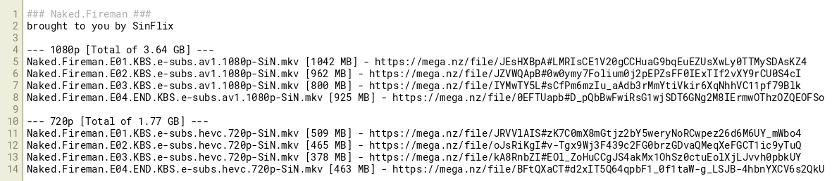 Naked.Fireman.E02.KBS.e-subs.av1.1080p-SiN.mkv [962 MB] - https://mega.nz/file/JZVWQApB#0w0ymy7Folium0j2pEPZsFF0IExTIf2vXY9rCU0S4cI