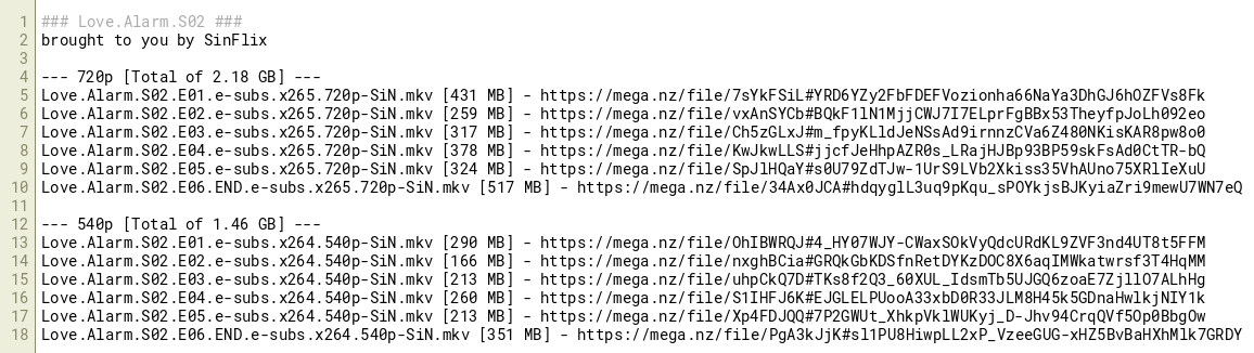 Love.Alarm.S02.E01.e-subs.x264.540p-SiN.mkv [290 MB] - https://mega.nz/file/OhIBWRQJ#4_HY07WJY-CWaxSOkVyQdcURdKL9ZVF3nd4UT8t5FFM