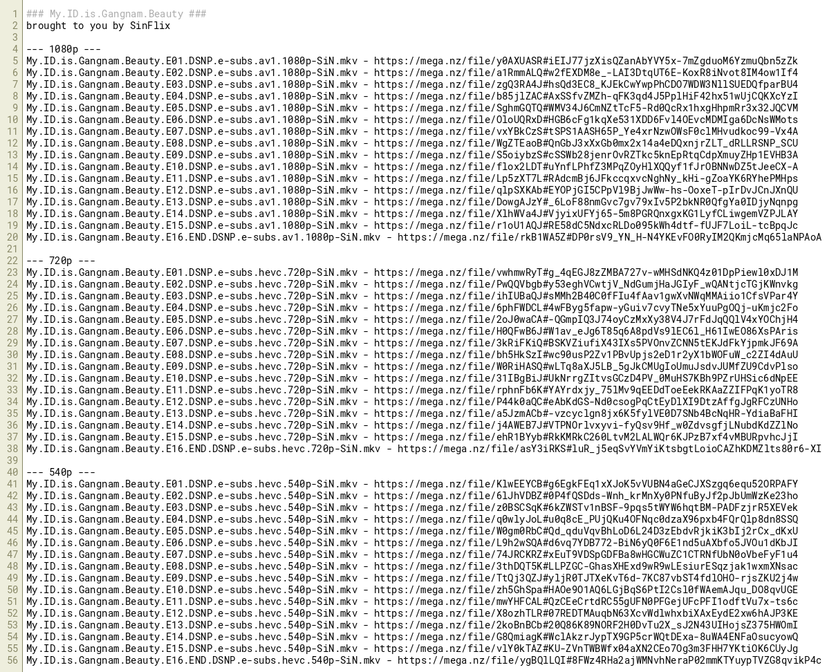 My.ID.is.Gangnam.Beauty.E12.DSNP.e-subs.hevc.540p-SiN.mkv - https://mega.nz/file/X8ozhTLR#07REDTMAuqbN63XcvWdlwhxbiXAxEydE2xw6hAJP3KE