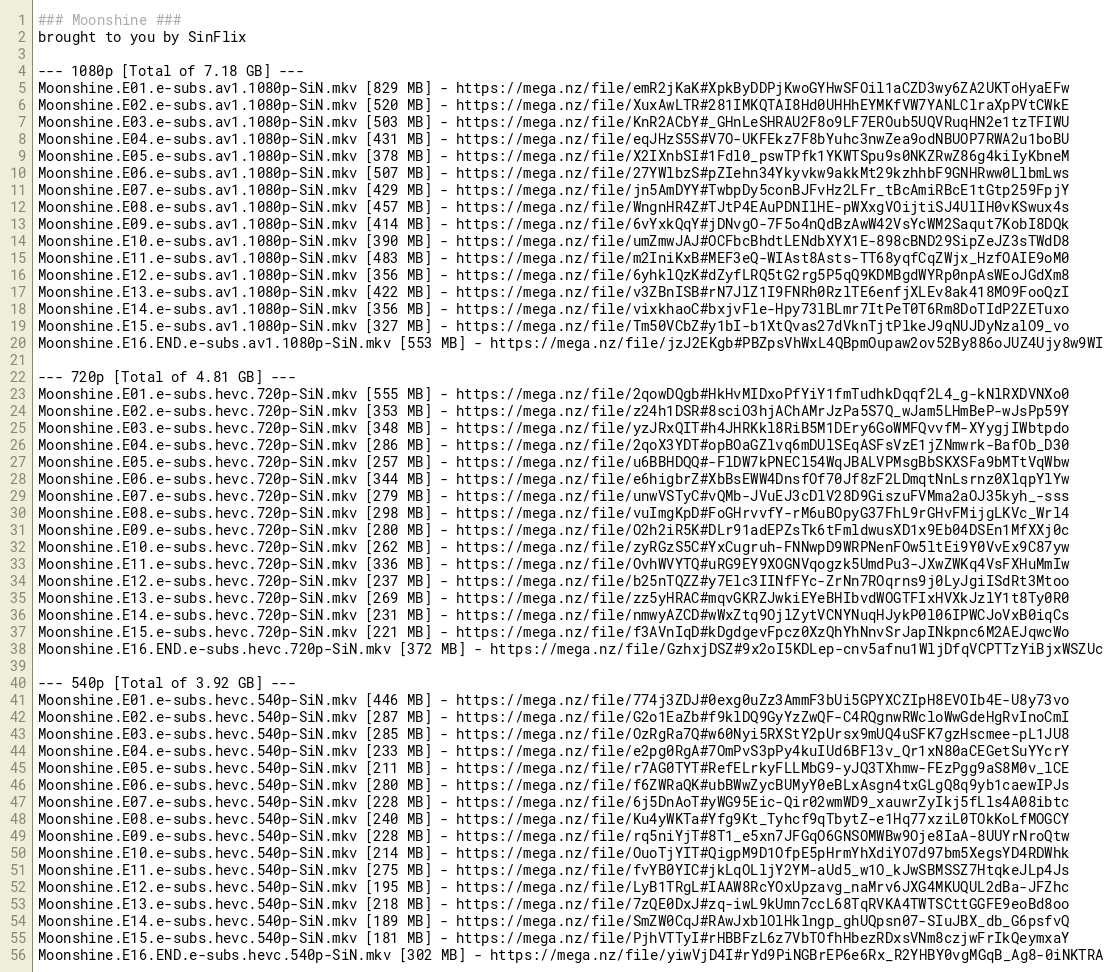 Moonshine.E15.e-subs.hevc.540p-SiN.mkv [181 MB] - https://mega.nz/file/PjhVTTyI#rHBBFzL6z7VbTOfhHbezRDxsVNm8czjwFrIkQeymxaY