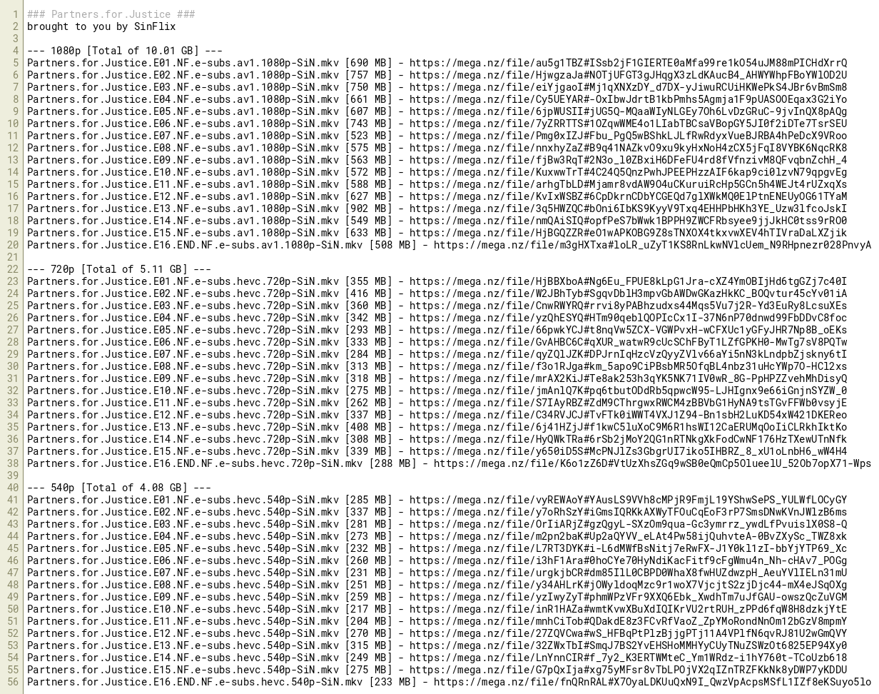 Partners.for.Justice.E02.NF.e-subs.hevc.540p-SiN.mkv [337 MB] - https://mega.nz/file/y7oRhSzY#iGmsIQRKkAXWyTFOuCqEoF3rP7SmsDNwKVnJWlzB6ms