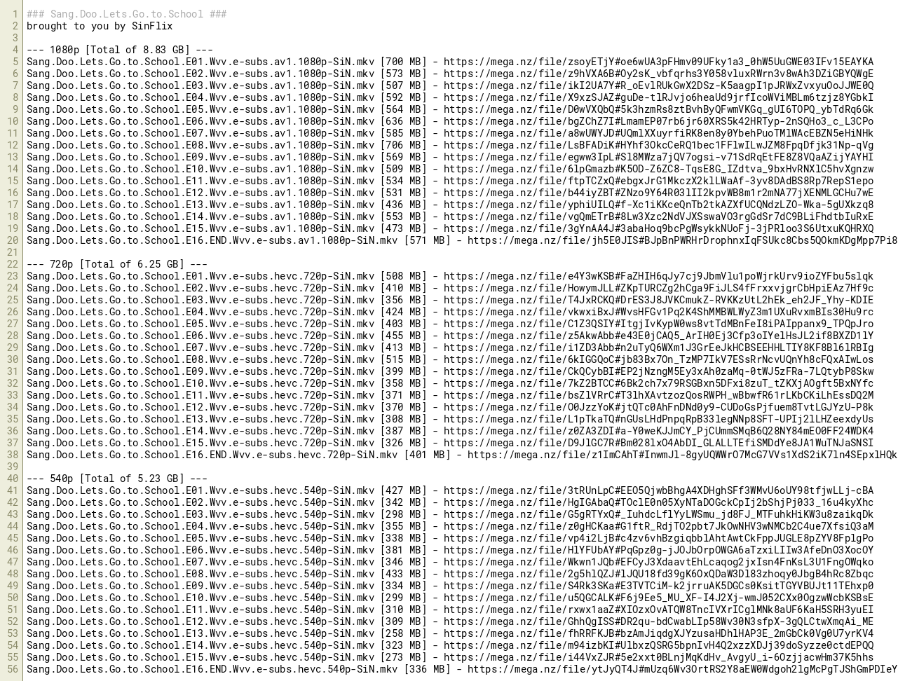 Sang.Doo.Lets.Go.to.School.E16.END.Wvv.e-subs.av1.1080p-SiN.mkv [571 MB] - https://mega.nz/file/jh5E0JIS#BJpBnPWRHrDrophnxIqFSUkc8Cbs5QOkmKDgMpp7Pi8