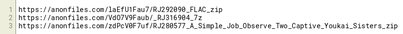 https://anonfiles.com/laEfU1Fau7/RJ292090_FLAC_zip https://anonfiles.com/VdO7V9Faub/_RJ316904_7z https://anonfiles.com/zdPcV0F7uf/RJ280577_A_Simple_Job_Observe_Two_Captive_Youkai_Sisters_zip