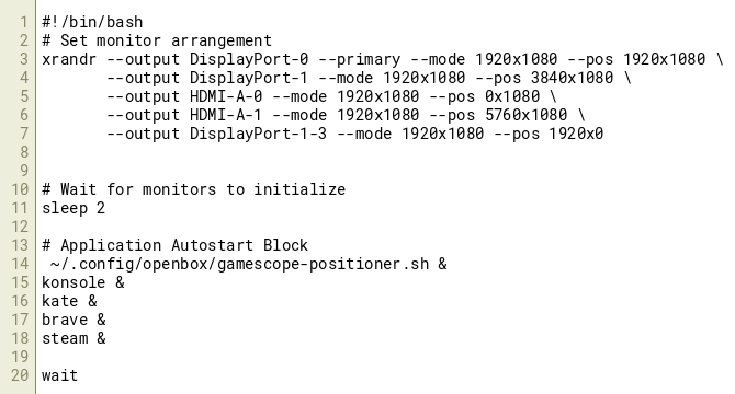 xrandr --output DisplayPort-0 --primary --mode 1920x1080 --pos 1920x1080 \