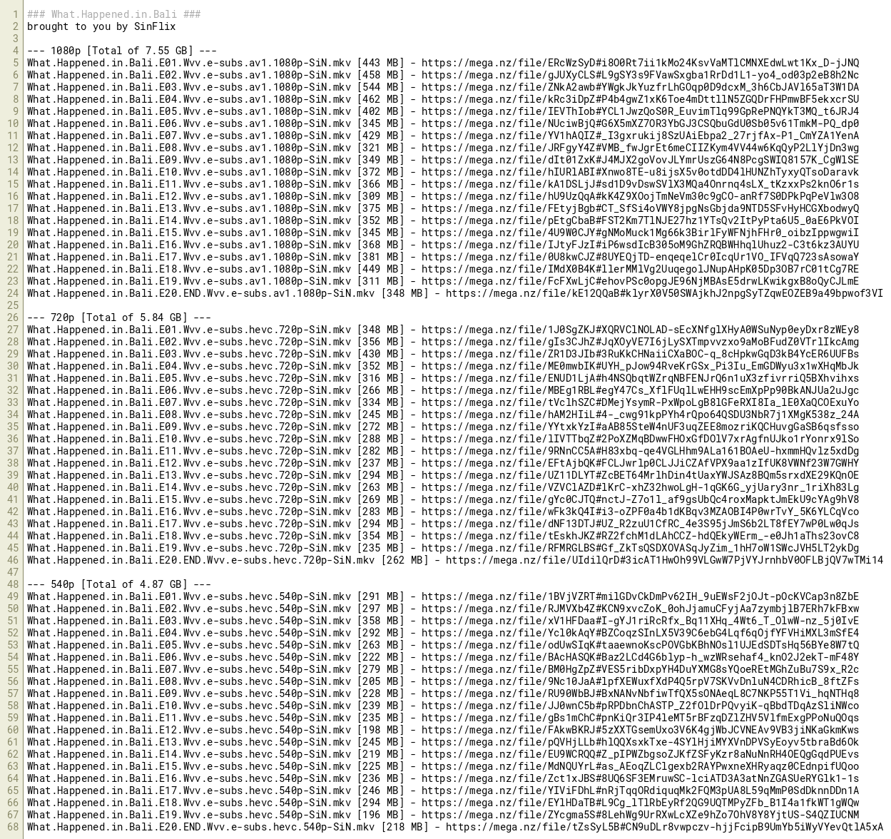 What.Happened.in.Bali.E20.END.Wvv.e-subs.av1.1080p-SiN.mkv [348 MB] - https://mega.nz/file/kE12QQaB#klyrX0V50SWAjkhJ2npgSyTZqwEOZEB9a49bpwof3VI