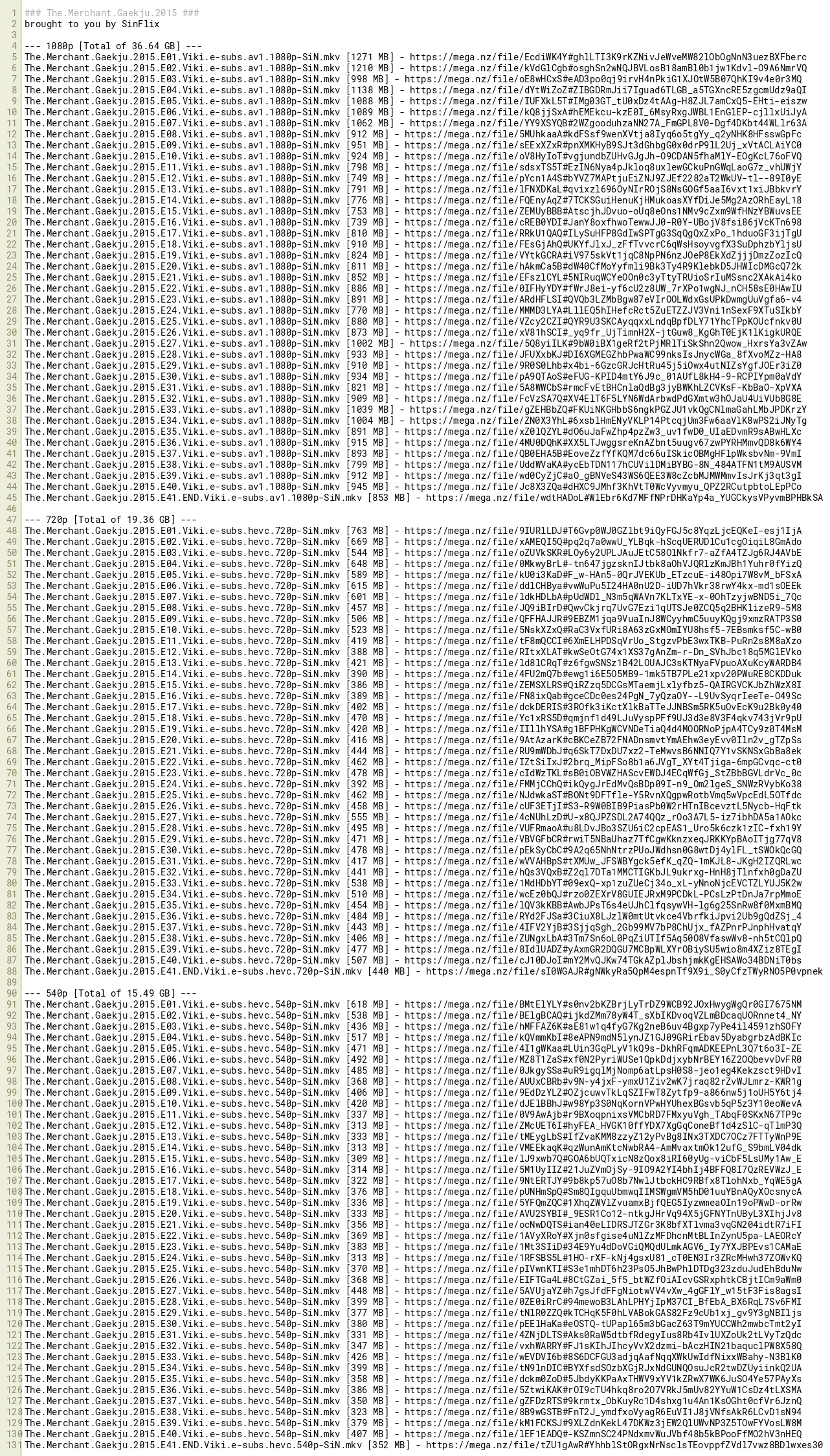 The.Merchant.Gaekju.2015.E41.END.Viki.e-subs.hevc.540p-SiN.mkv [352 MB] - https://mega.nz/file/tZU1gAwR#YhhblStORgxNrNsclsTEovppfZVdl7vwz8BDlwxes30