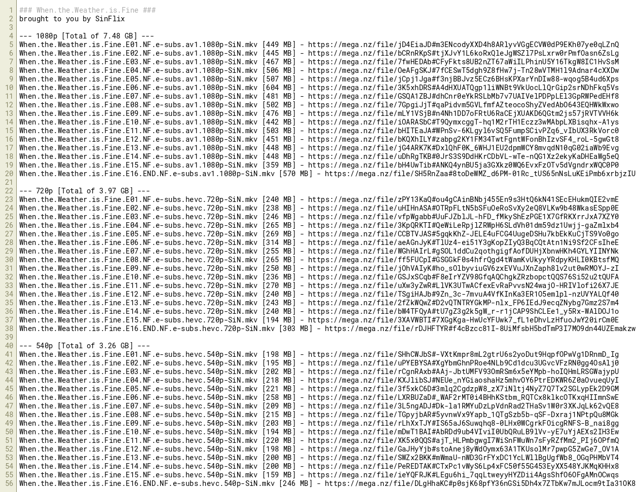 When.the.Weather.is.Fine.E16.END.NF.e-subs.av1.1080p-SiN.mkv [570 MB] - https://mega.nz/file/SH5RnZaa#8toDeWMZ_d6PM-01Rc_tUS65nNsLuKEiPmb6xrbjzIU