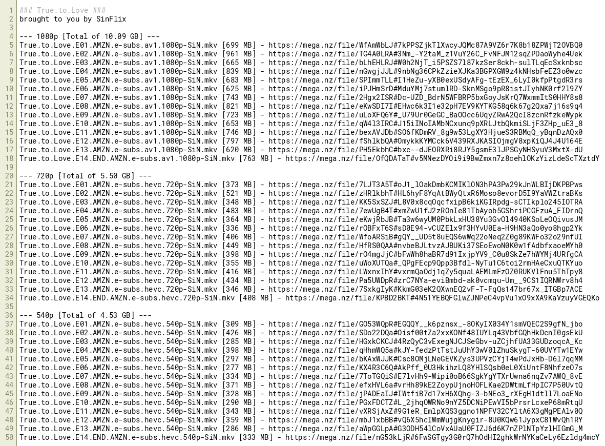 True.to.Love.E12.AMZN.e-subs.av1.1080p-SiN.mkv [797 MB] - https://mega.nz/file/fShlkbQA#OmykkKYMCck6V439RXJKASIOjmgV8xpKiQJ4J4U164E