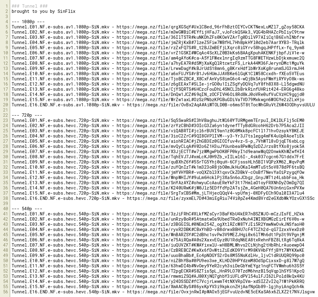 Tunnel.E12.NF.e-subs.hevc.540p-SiN.mkv - https://mega.nz/file/T2pgECKR#S8ZTis5pL_HnR9LO70TzdM6hnzBl5qVqplhSYS1KpcQ