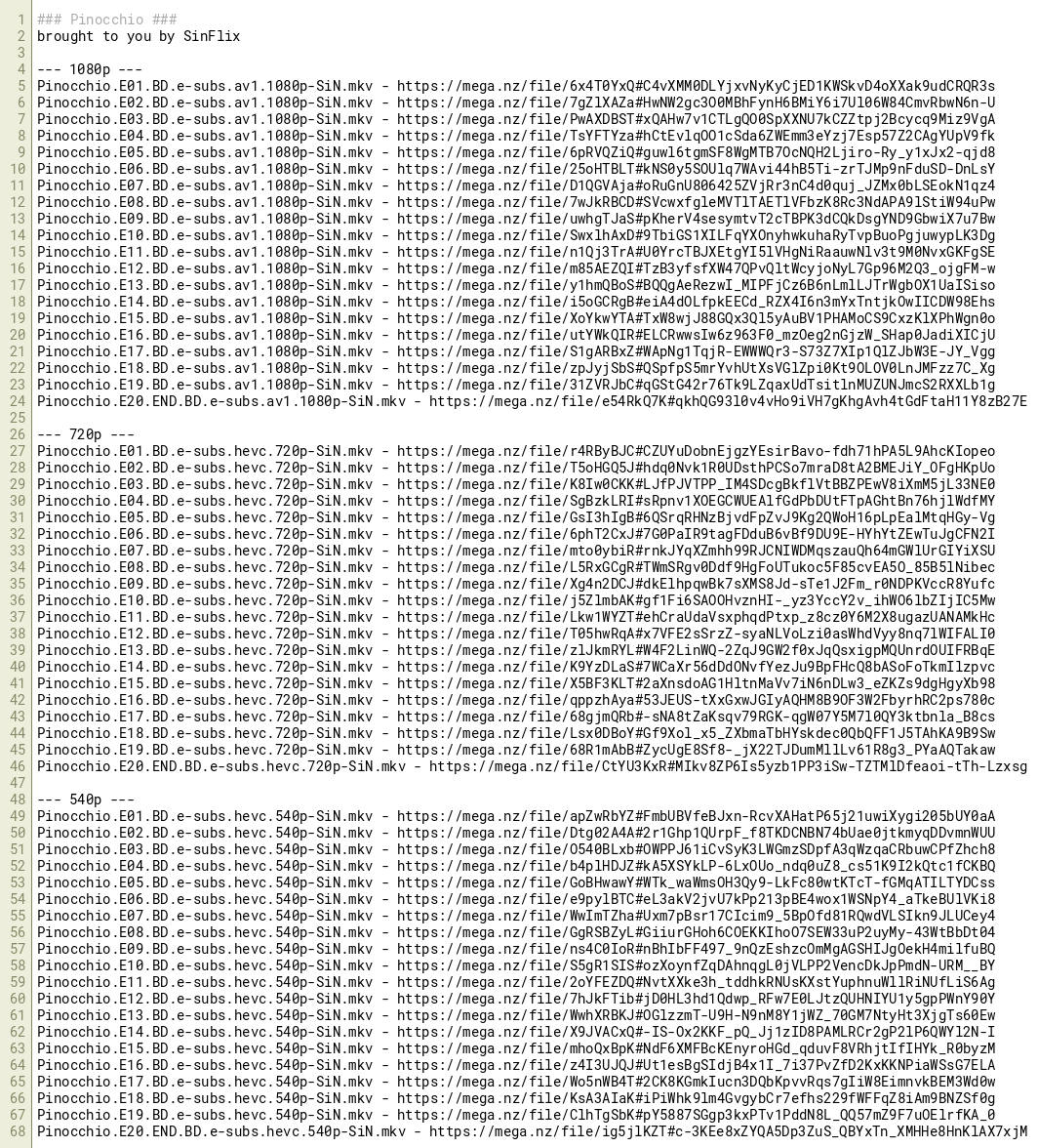 Pinocchio.E18.BD.e-subs.hevc.540p-SiN.mkv - https://mega.nz/file/KsA3AIaK#iPiWhk9lm4GvgybCr7efhs229fWFFqZ8iAm9BNZSf0g