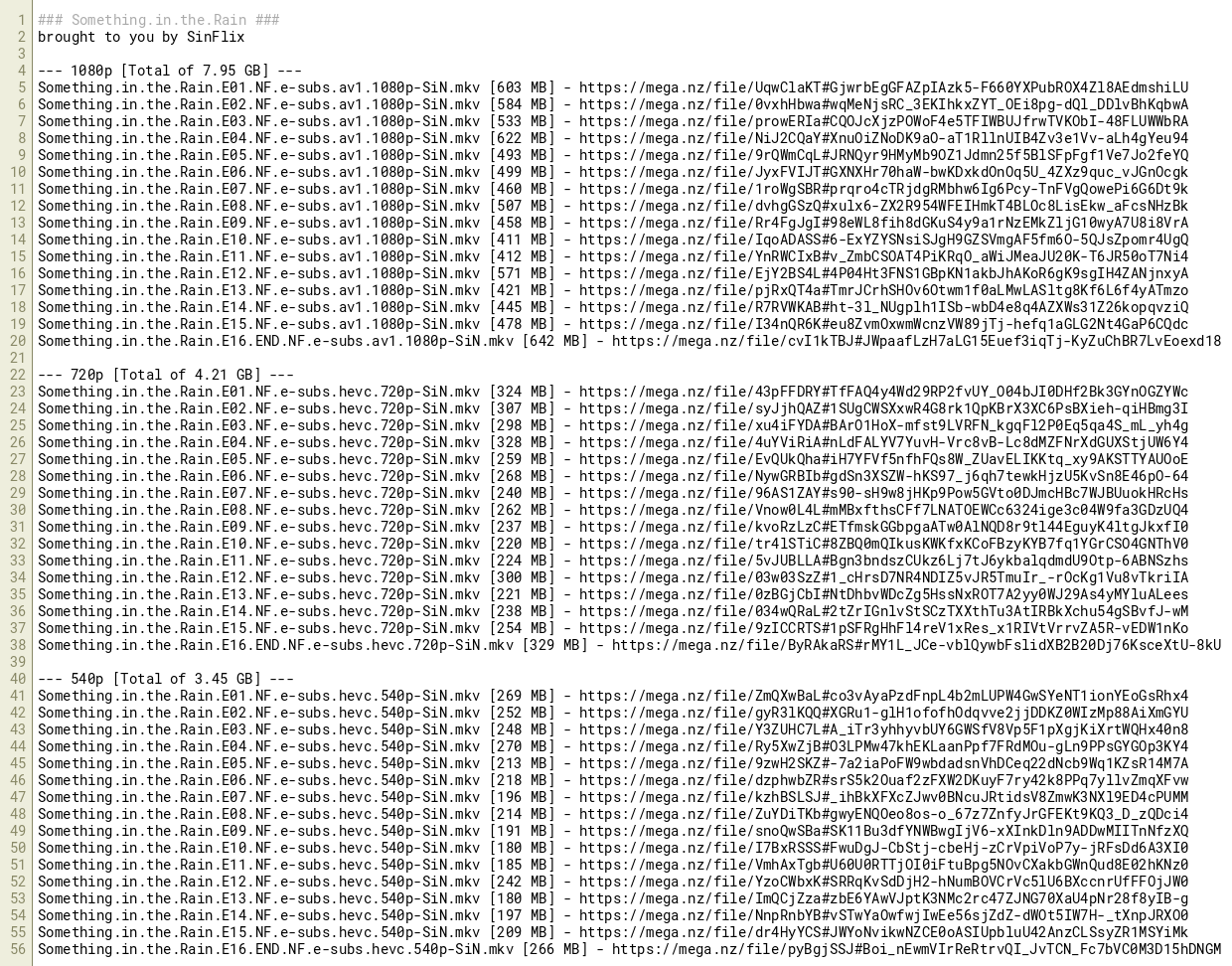 Something.in.the.Rain.E13.NF.e-subs.av1.1080p-SiN.mkv [421 MB] - https://mega.nz/file/pjRxQT4a#TmrJCrhSHOv6Otwm1f0aLMwLASltg8Kf6L6f4yATmzo