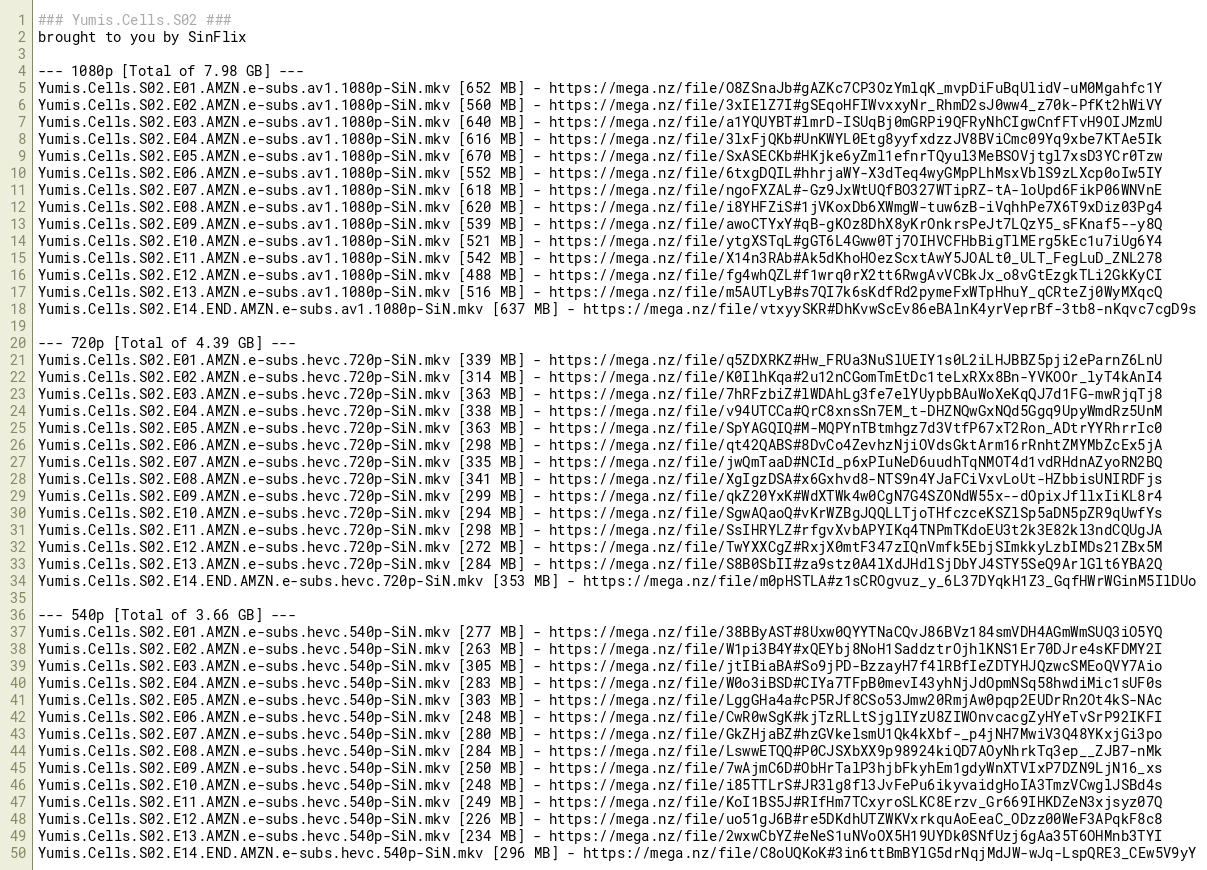 Yumis.Cells.S02.E02.AMZN.e-subs.hevc.540p-SiN.mkv [263 MB] - https://mega.nz/file/W1pi3B4Y#xQEYbj8NoH1SaddztrOjhlKNS1Er70DJre4sKFDMY2I