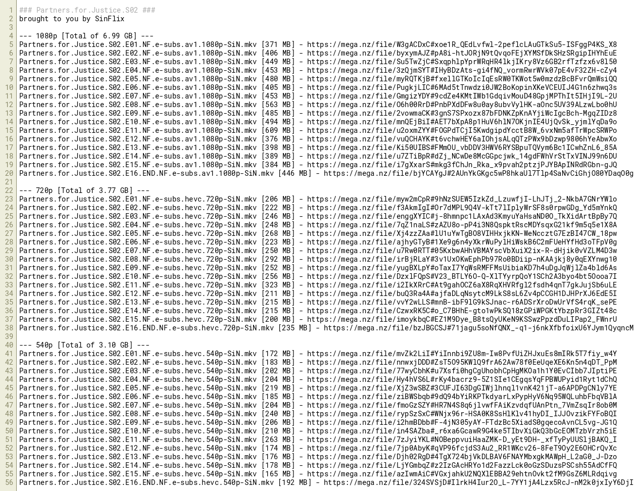 Partners.for.Justice.S02.E01.NF.e-subs.av1.1080p-SiN.mkv [371 MB] - https://mega.nz/file/W3gACDxC#xoe1R_QEdLvfwl-2peflcLAuGTkSu5-ISFggP4KS_X8
