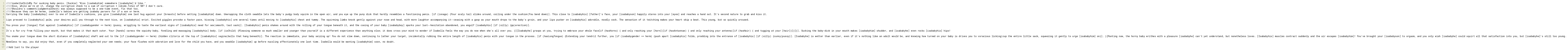 ////Because they can be herms, isabella's babies are getting isababy parsers for if a son or herm.