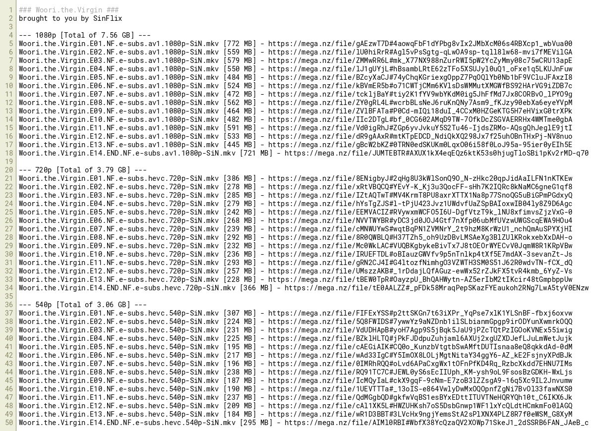 Woori.the.Virgin.E13.NF.e-subs.av1.1080p-SiN.mkv [445 MB] - https://mega.nz/file/gBcW2bKZ#0TRN0edSKUKm0LqxO06i58f0LoJ95a-95ier0yEIh5E