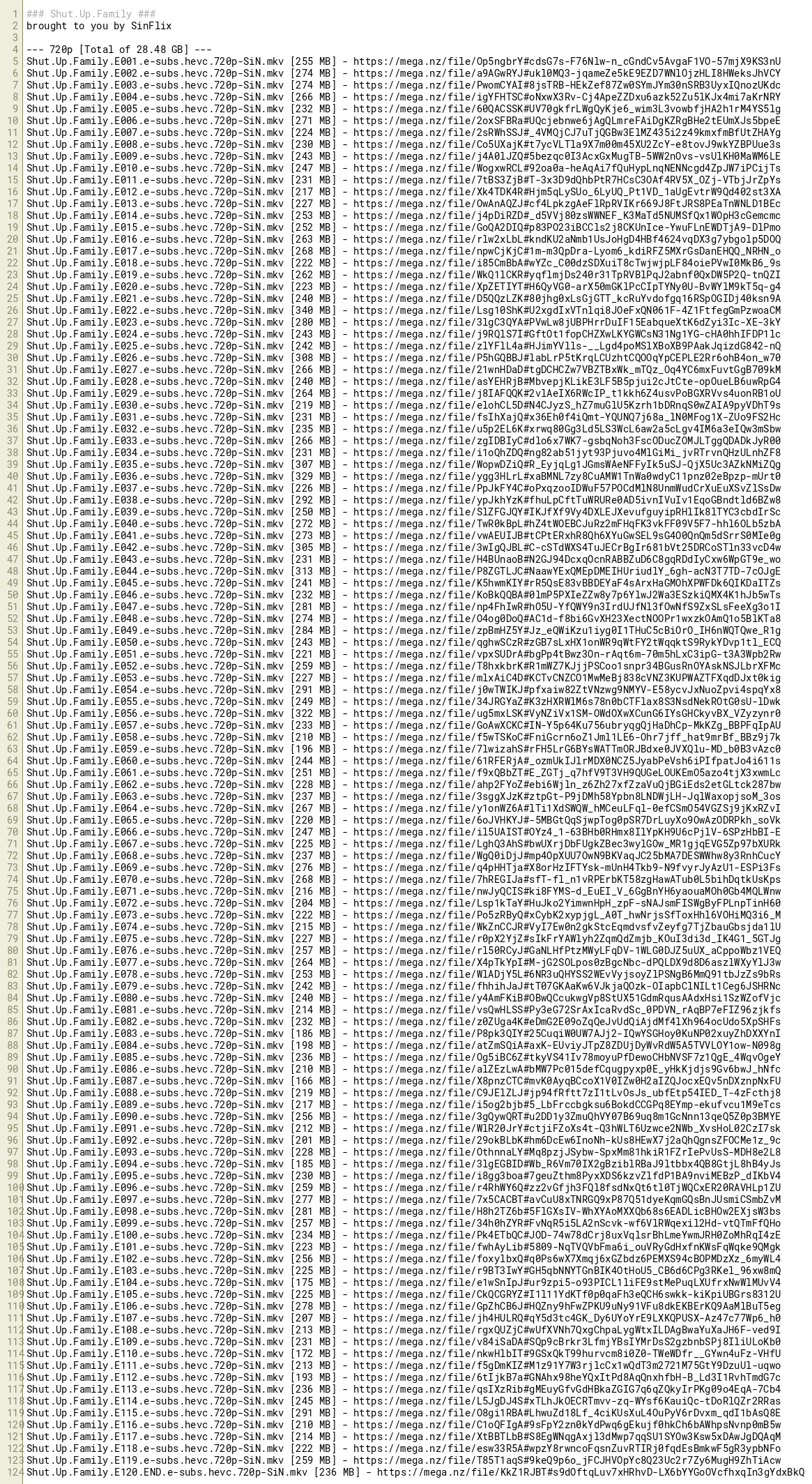 Shut.Up.Family.E002.e-subs.hevc.720p-SiN.mkv [274 MB] - https://mega.nz/file/a9AGwRYJ#ukl0MQ3-jqameZe5kE9EZD7WNlOjzHLI8HWeksJhVCY