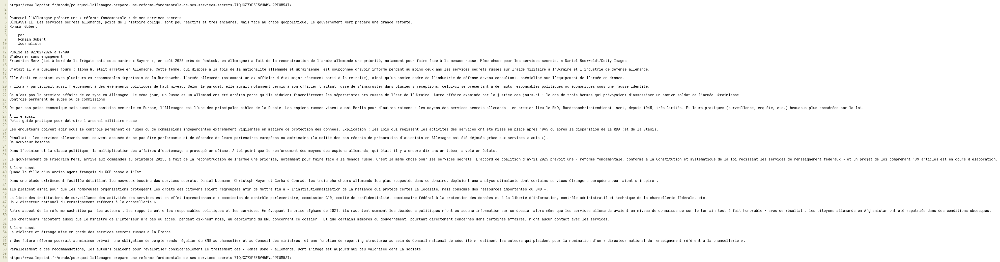 https://www.lepoint.fr/monde/pourquoi-lallemagne-prepare-une-reforme-fondamentale-de-ses-services-secrets-7IQJCZ7XP5E5VHWMVJRPIUM5AI/