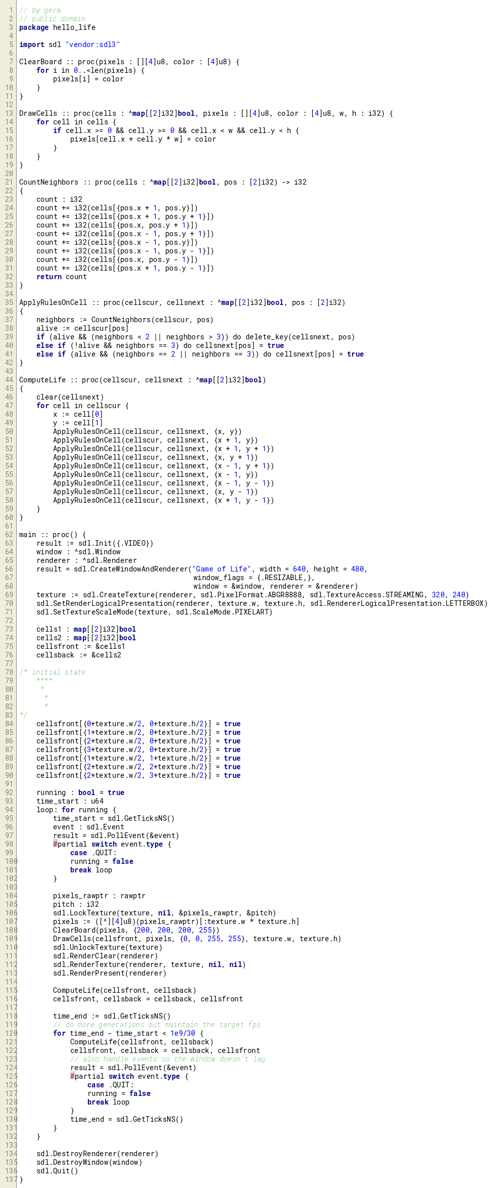 ComputeLife :: proc(cellscur, cellsnext : ^map[[2]i32]bool)