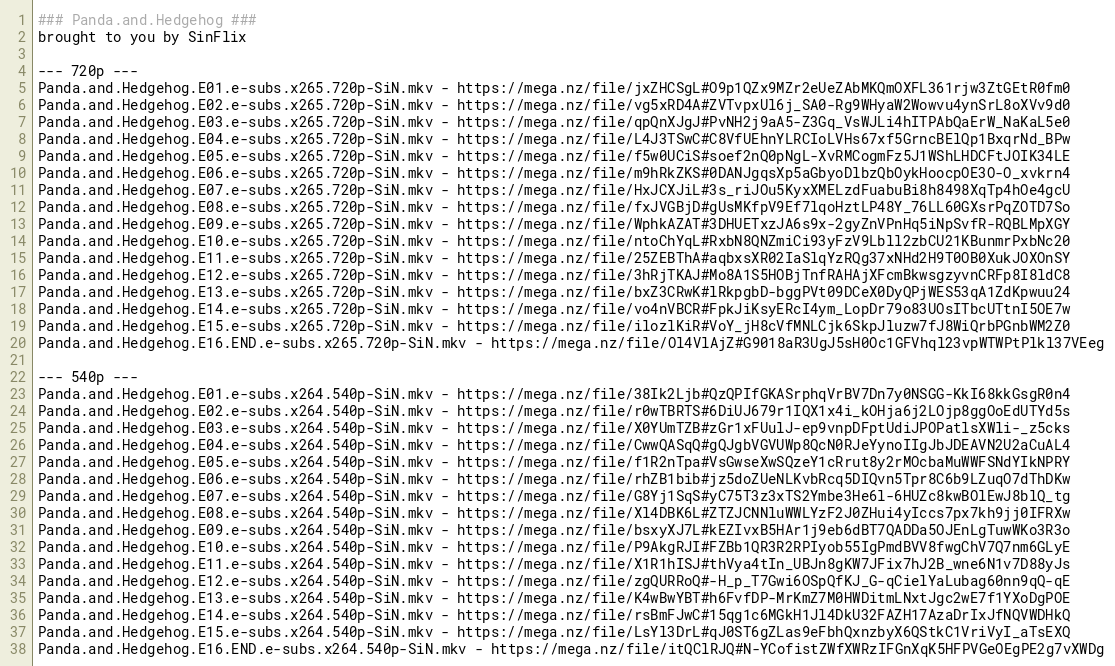 Panda.and.Hedgehog.E12.e-subs.x264.540p-SiN.mkv - https://mega.nz/file/zgQURRoQ#-H_p_T7Gwi6OSpQfKJ_G-qCielYaLubag60nn9qQ-qE