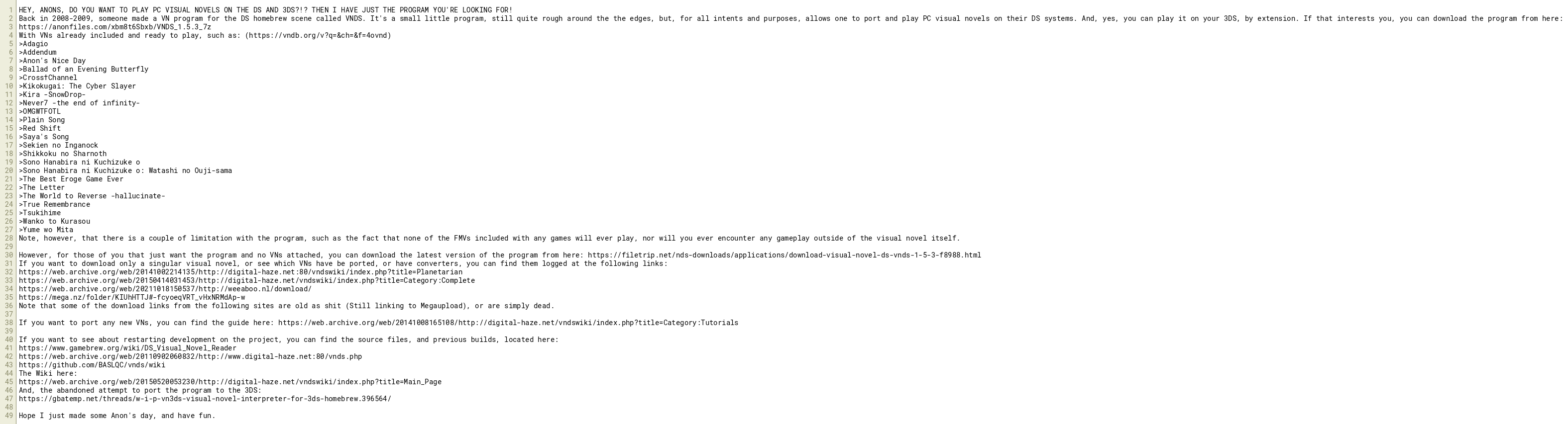 HEY, ANONS, DO YOU WANT TO PLAY PC VISUAL NOVELS ON THE DS AND 3DS?!? THEN I HAVE JUST THE PROGRAM YOU'RE LOOKING FOR!