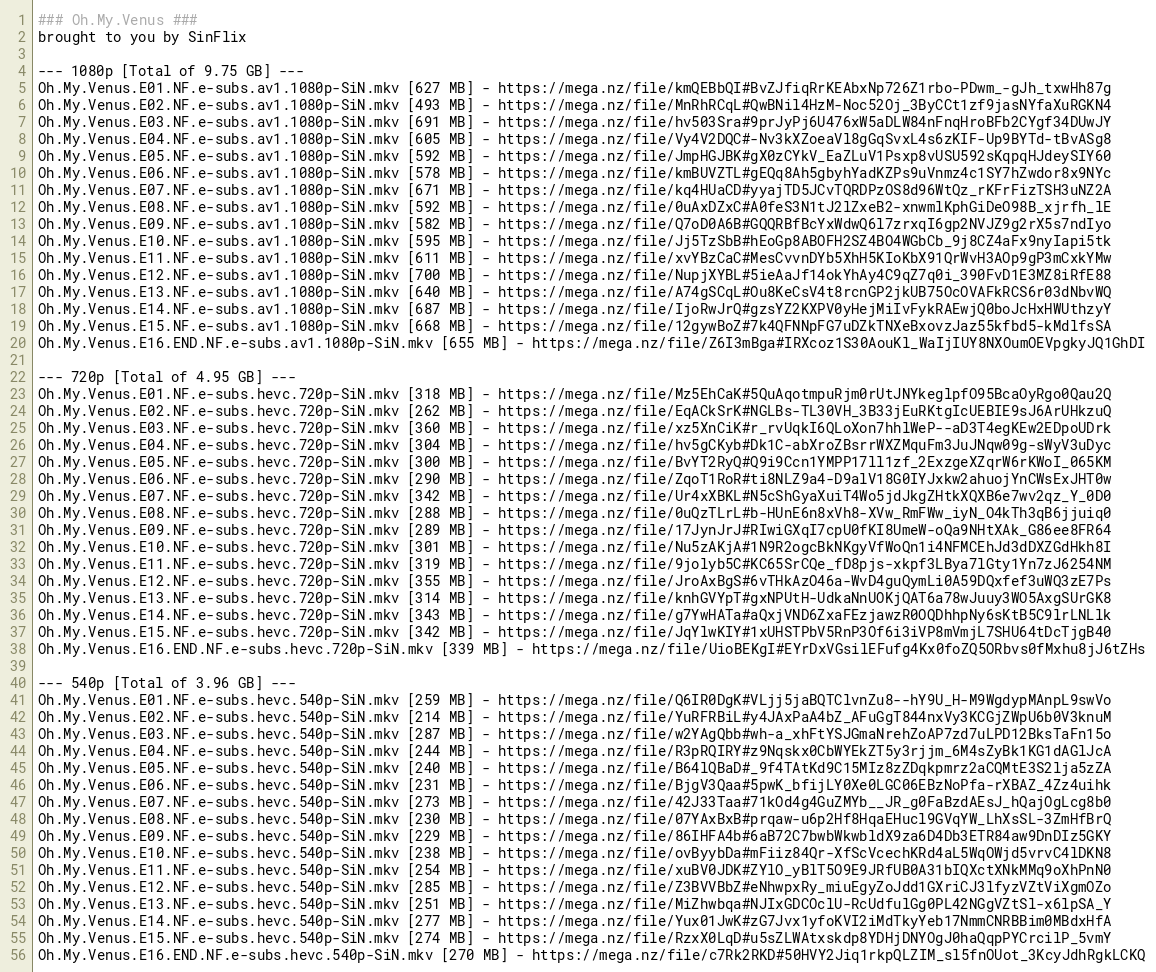 Oh.My.Venus.E15.NF.e-subs.hevc.720p-SiN.mkv [342 MB] - https://mega.nz/file/JqYlwKIY#1xUHSTPbV5RnP3Of6i3iVP8mVmjL7SHU64tDcTjgB40