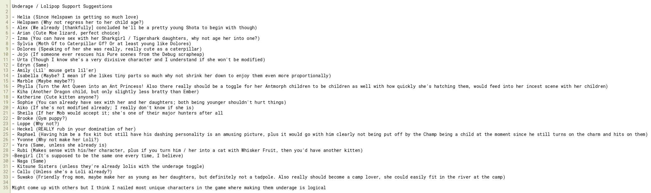Underage / Lolipop Support Suggestions