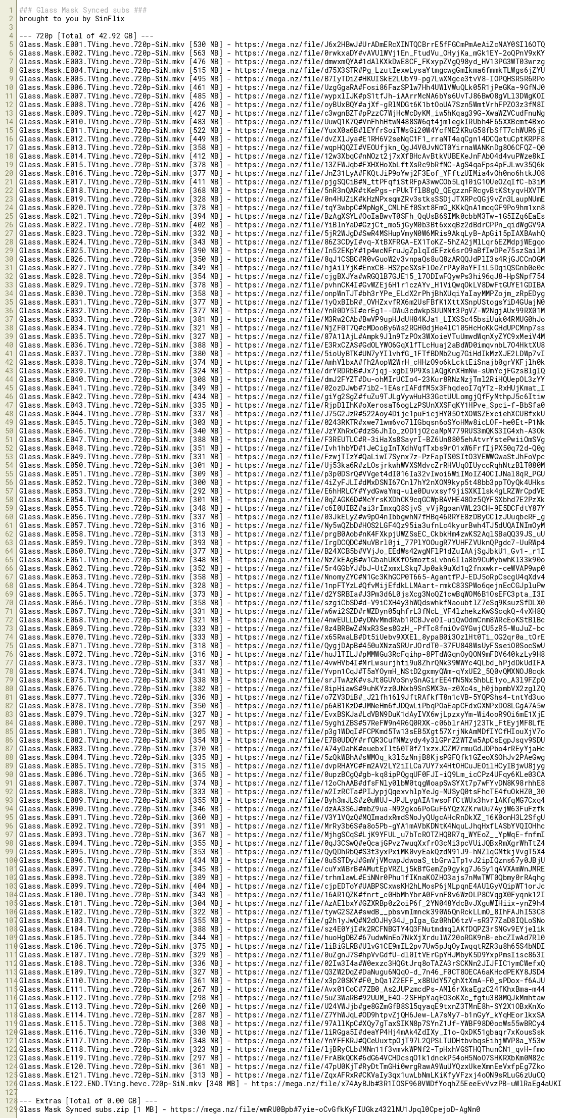 Glass Mask Synced subs.zip [1 MB] - https://mega.nz/file/wmRU0Bpb#7yie-oCvGfkKyFIUGkz432lNU1Jpql0CpejoD-AgNn0