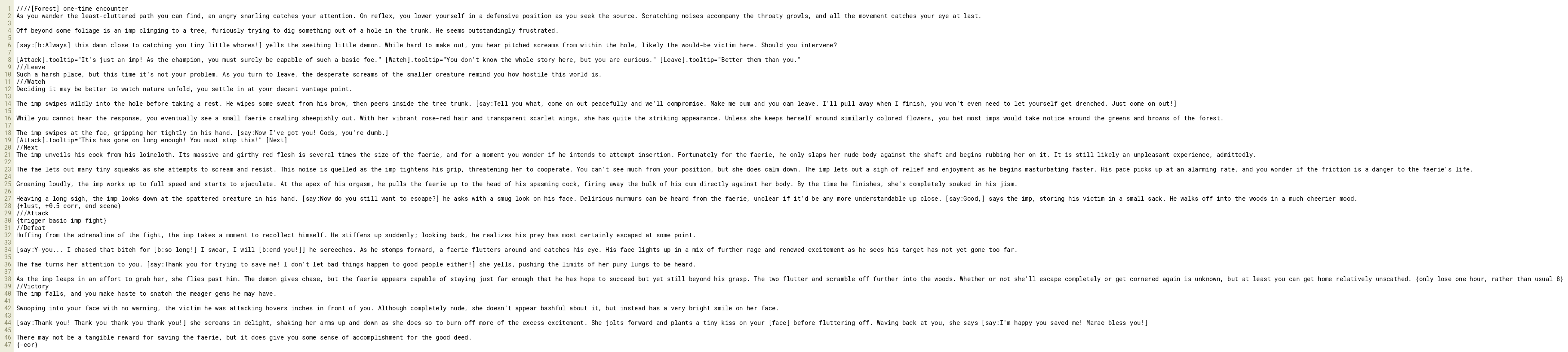 [Attack].tooltip="It's just an imp! As the champion, you must surely be capable of such a basic foe." [Watch].tooltip="You don't know the whole story here, but you are curious." [Leave].tooltip="Better them than you."