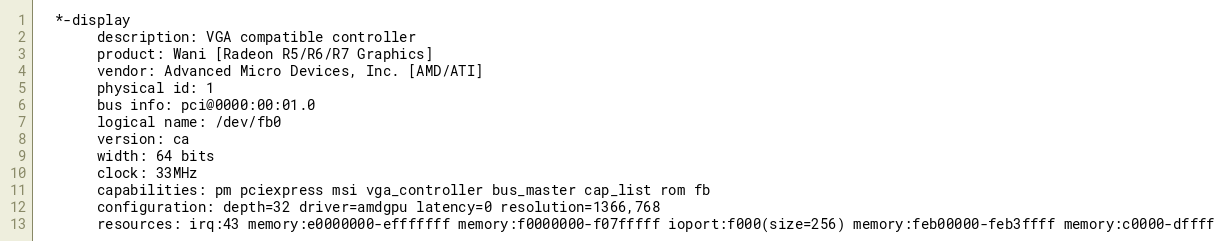 configuration: depth=32 driver=amdgpu latency=0 resolution=1366,768