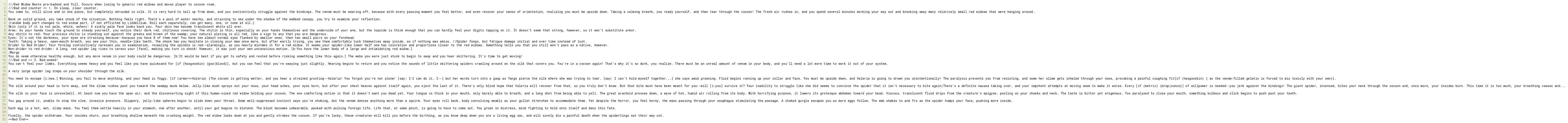 ///Red Widow Nests pre-badend and full. Occurs when losing to generic red widows and moves player to cocoon room.
