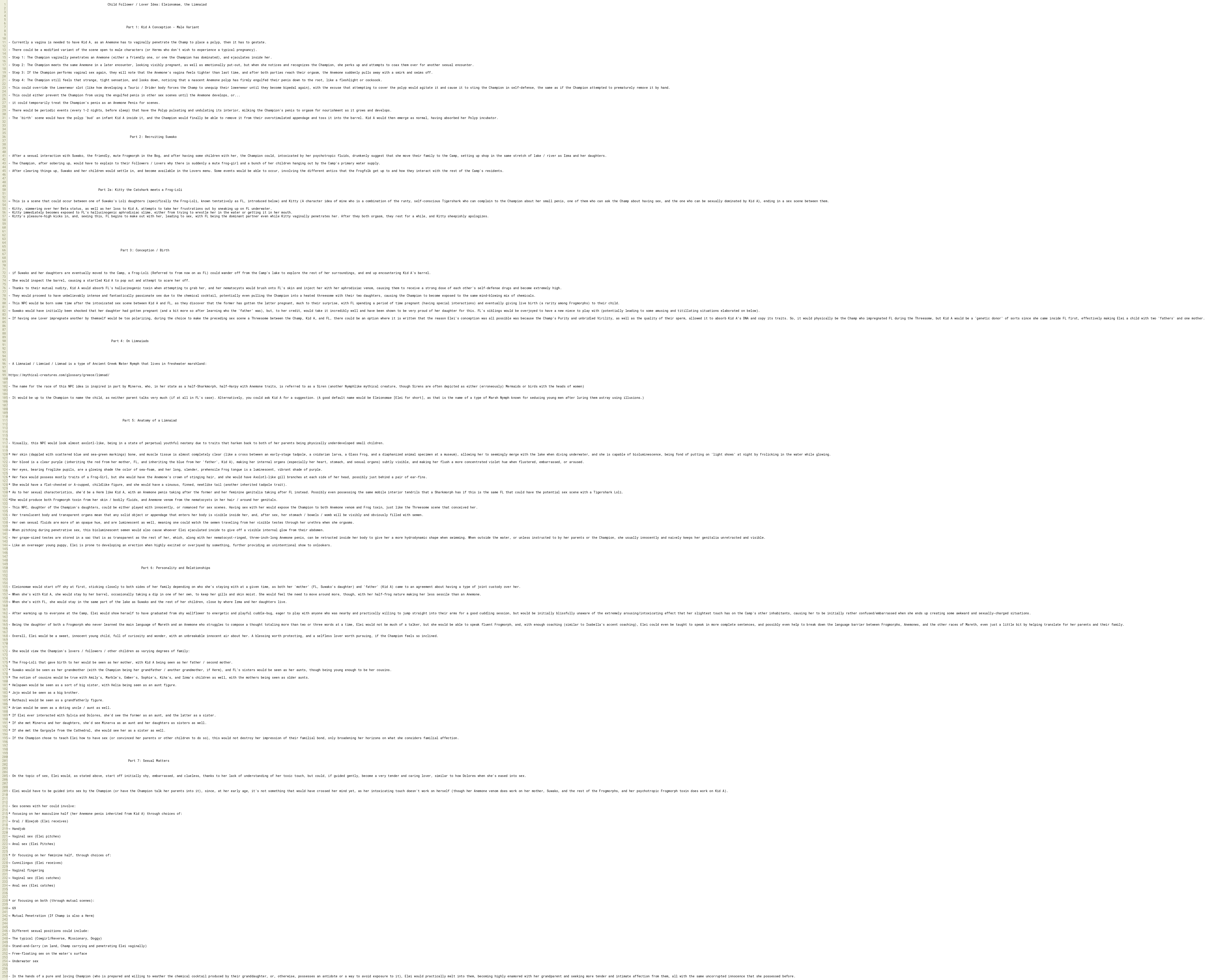 ~ If the Champion chose to teach Elei how to have sex (or convinced her parents or other children to do so), this would not destroy her impression of their familial bond, only broadening her horizons on what she considers familial affection.