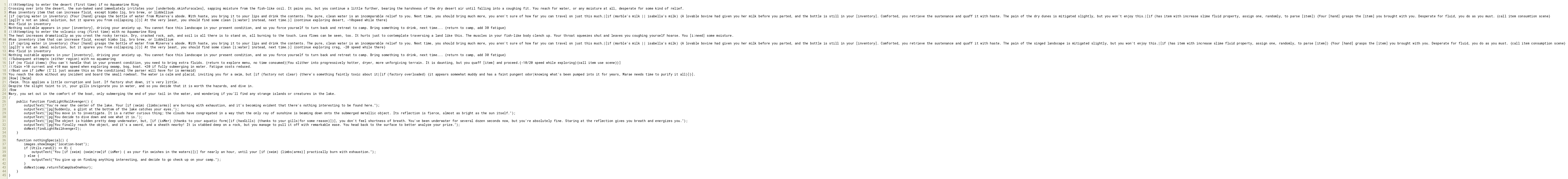 [pg]It's not an ideal solution, but it spares you from collapsing.}]}] At the very least, you should find some clean [i:water] instead, next time.}] {continue exploring desert, -10speed while there}