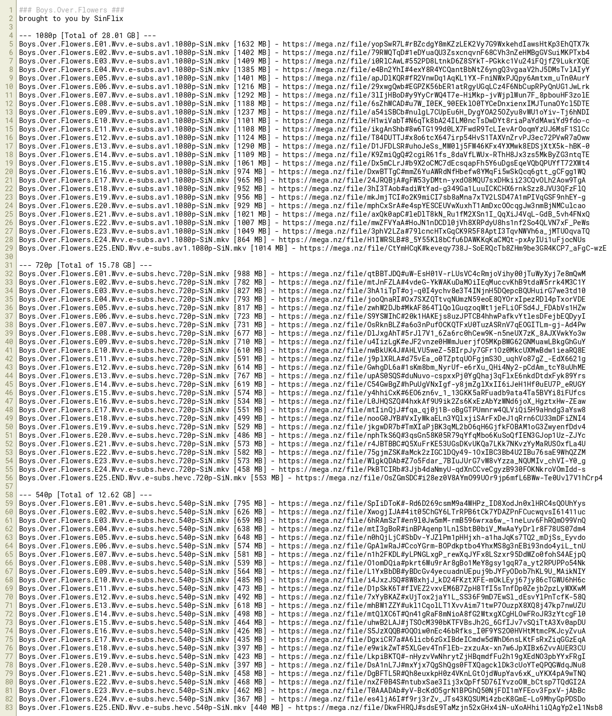 Boys.Over.Flowers.E01.Wvv.e-subs.hevc.540p-SiN.mkv [795 MB] - https://mega.nz/file/SpIiDToK#-Rd6D269csmM9a4WHPz_ID8XodJn0xlHRC4sQOUhYys