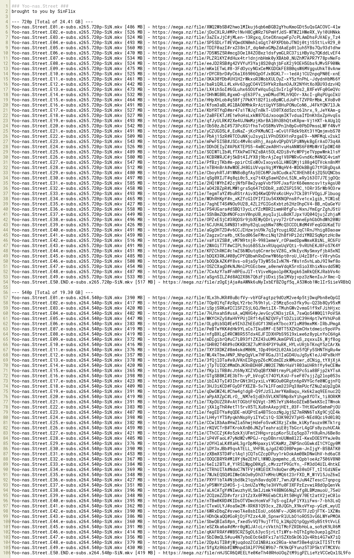 Yoo-nas.Street.E23.e-subs.x265.720p-SiN.mkv [543 MB] - https://mega.nz/file/mPwFSI5B#JSCc4MvRcsRhj_AspAvQPpDVlPiWNykBgErAsO73q4A