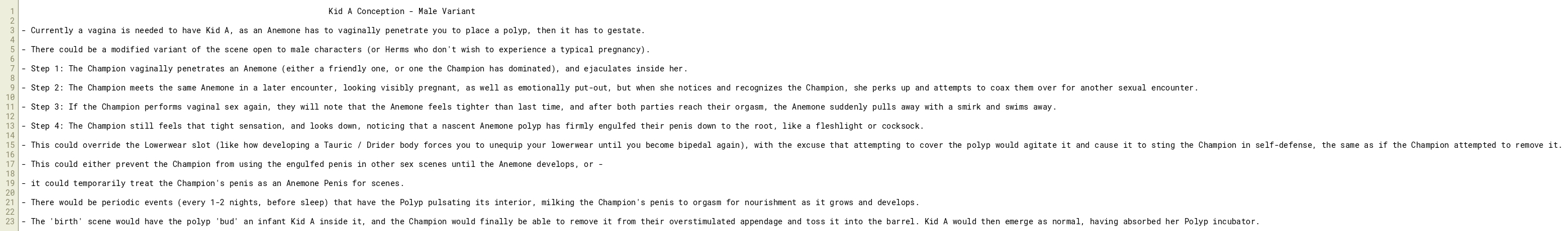 - Currently a vagina is needed to have Kid A, as an Anemone has to vaginally penetrate you to place a polyp, then it has to gestate.