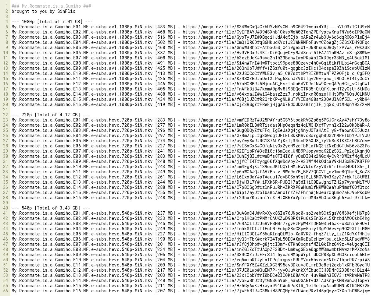 My.Roommate.is.a.Gumiho.E15.NF.e-subs.av1.1080p-SiN.mkv [434 MB] - https://mega.nz/file/f6BjlJZC#R2QrbKP-gNLWuTYVIEs468sm23OAUlA8f5CL_-yRb94